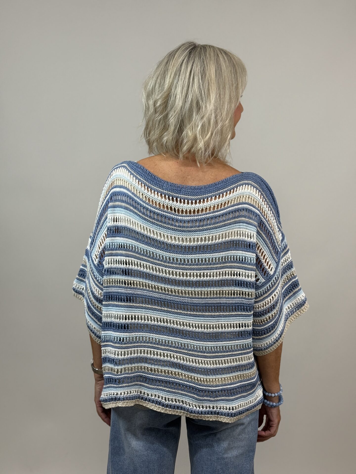 Hålstickad tröja med båtringning – blå
